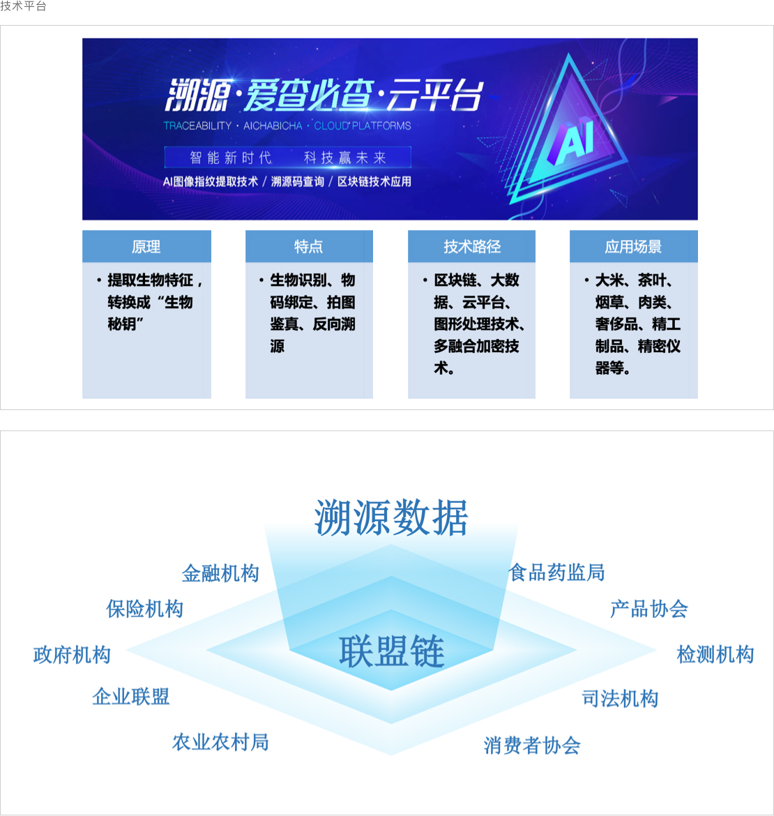 基于AI圖像識別技術(shù),使用神經(jīng)網(wǎng)絡模型提供一套完整通用的商品指紋信息的提取和驗證方法,真正實現(xiàn)“物碼”的綁定,通過軟件精準實現(xiàn)每一個物品的追溯,真正實現(xiàn)“一物一碼”。給每一個物品一個獨一無二的“身份證”。