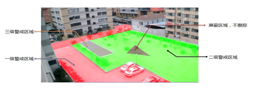 高清智能跟蹤系統可便捷設置三級警戒區域。用戶可根據實際場景和監控區域的重要性劃分各級警戒區域,同時也可以設置對某些特定區域的屏蔽,來保障跟蹤效果和提高跟蹤效率。